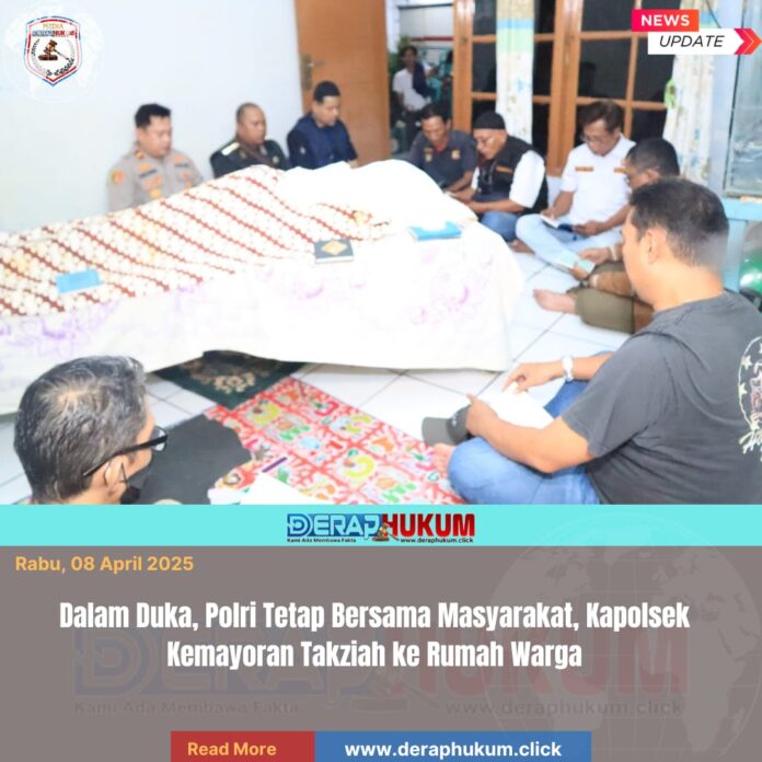 Jakarta Pusat, | Deraphukum.click | Kepolisian terus menunjukkan kepeduliannya kepada masyarakat, tidak hanya dalam menjaga keamanan dan ketertiban, tetapi juga hadir dalam momen duka. Hal itu terlihat saat Kapolsek Kemayoran Kompol Dr. Agung Ardiyansyah, S.H., M.H. melaksanakan takziah ke kediaman almarhum Bapak Aprianto, anggota Pokdarkamtibmas, Selasa (7/4/2026) malam.