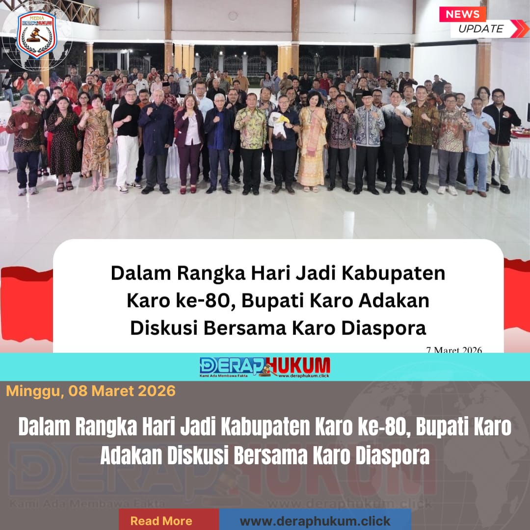 Pertama kali dalam sejarah Pemkab Karo, Bupati Karo, Brigjen Pol (Purn) Dr. dr. Antonius Ginting, Sp.OG., M.Kes., mengadakan diskusi dengan Thema “Satu Visi Satu Langkah Kolaborasi Tokoh Karo dan Pemerintah dalam Membangun Kabupaten Karo” bersama Karo Diaspora dalam rangka Hari Jadi Pemerintah Kabupaten Karo ke-80 yang dilaksanakan di Jambur Pemkab Karo, pada Sabtu (7/3/2026).