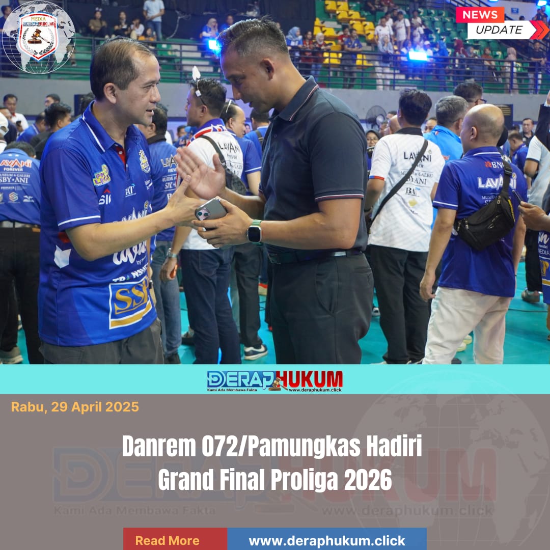Yogyakarta, | Deraphukum.click | Komandan Korem (Danrem) 072/Pamungkas Brigjen TNI Yuniar Dwi Hantono, S.Sos., M.Si., M.Sc., menghadiri pertandingan Grand Final Proliga 2026 yang digelar di GOR Amongrogo, Semaki, Umbulharjo, Kota Yogyakarta, Sabtu malam (25/4/2026).