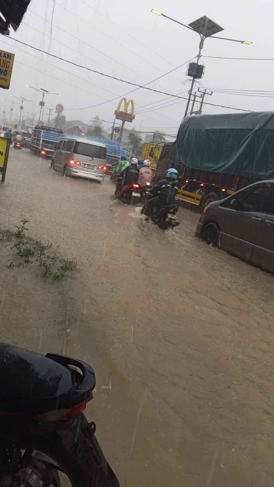 Di tengah deras hujan dan air keruh yang mengalir tanpa arah, motor-motor matic satu per satu tumbang, mogok, mati total. Angkutan umum terjebak, penumpang terlantar, sopir meradang, dan kemacetan mengular panjang. Jalan yang seharusnya menjadi simbol konektivitas justru menjelma monumen kegagalan tata kelola infrastruktur daerah.