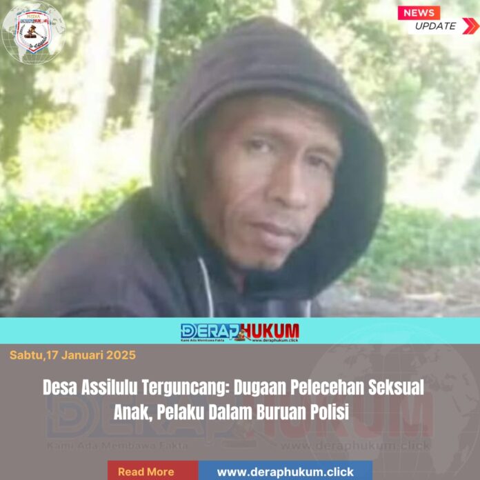 Maluku, | Deraphukum.click | Sunyi Desa Assilulu kini terasa berbeda. Di balik hijaunya pepohonan dan tenangnya kehidupan masyarakat pesisir, tersimpan luka mendalam yang mengguncang nurani publik. Seorang pria dewasa diduga kuat terlibat dalam kasus pelecehan seksual terhadap anak di bawah umur, sebuah perbuatan yang bukan hanya melanggar hukum, tetapi juga menghancurkan masa depan dan kemanusiaan itu sendiri.