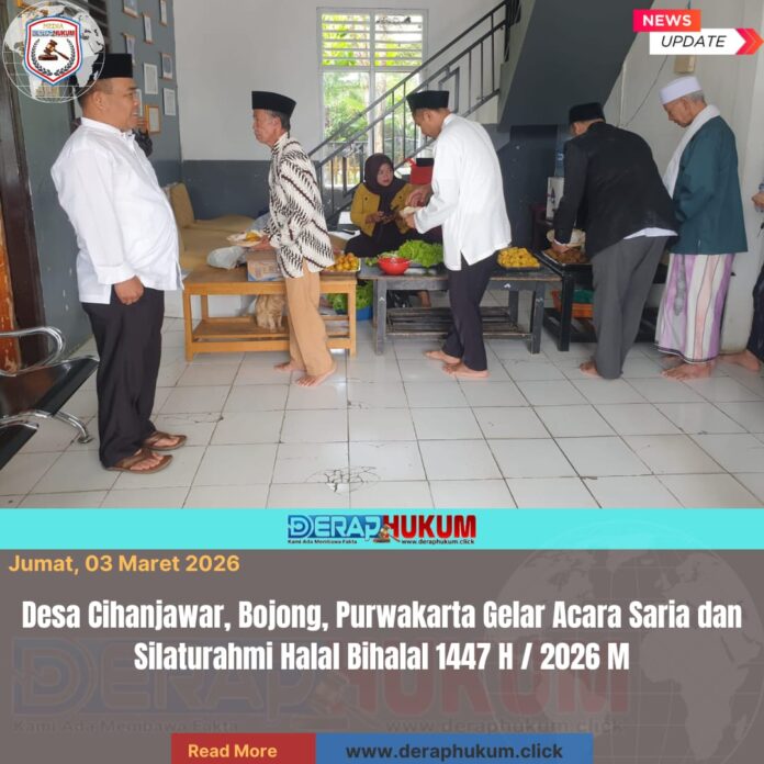 Purwakarta, Jawa Barat | Deraphukum.click | Dalam rangka menyambut berakhirnya bulan suci Ramadan serta merayakan Hari Raya Idul Fitri 1447 H / 2026 M, Pemerintah Desa Cihanjawar, Kecamatan Bojong, Kabupaten Purwakarta menggelar acara Saria dan Silaturahmi Halal Bihalal, pada Kamis (02/04/2026).