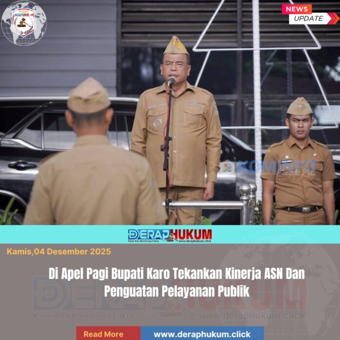 Pemerintah Kabupaten (Pemkab) Karo dalam hal ini Bupati Karo, Brigjen Pol (Purn) Dr. dr. Antonius Ginting, Sp.OG., M.Kes., memimpin apel Senin pagi di lingkungan Pemerintah Kabupaten Karo yang berlangsung di halaman Kantor Bupati Karo, jalan Djamin Ginting Kabanjahe Senin (01/12/2025).