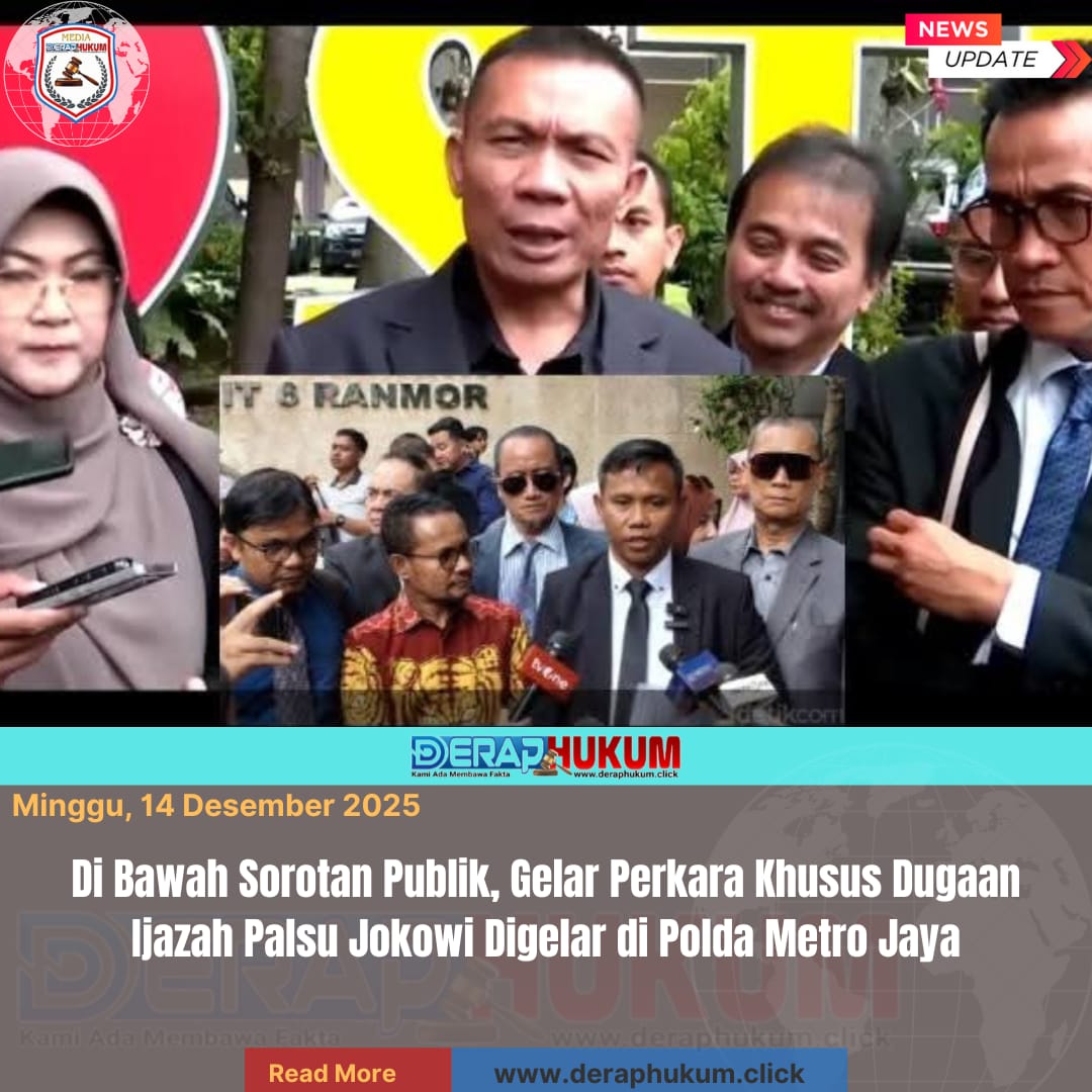 JAKARTA, DKI | Deraphukum.click | Polda Metro Jaya menggelar gelar perkara khusus terkait dugaan ijazah palsu Presiden Joko Widodo, Selasa (…), sebagai bagian dari mekanisme klarifikasi dan transparansi penegakan hukum. Kegiatan tersebut menjadi babak lanjutan dari polemik yang telah lama menyita perhatian publik nasional.