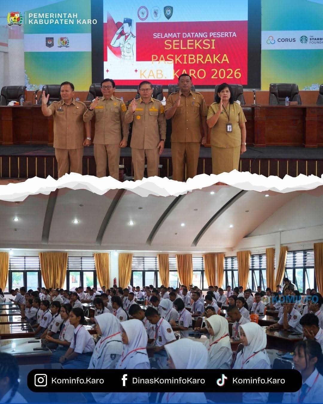 KARO, l Deraphukum.click l Bupati Karo, Brigjen Pol (Purn) Dr. dr. Antonius Ginting, Sp.OG., M.Kes, yang diwakili oleh Wakil Bupati Karo, Komando Tarigan, SP, secara resmi membuka kegiatan Seleksi Calon Pasukan Pengibar Bendera Pusaka (Paskibraka) Kabupaten Karo Tahun 2026 yang berlangsung di Aula Rakoetta Brahmana, Kantor Bupati Karo, Senin (06/04/2026).