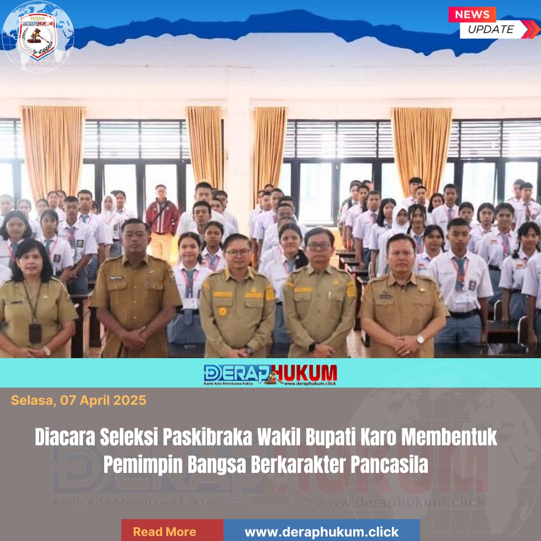 KARO, l Deraphukum.click l Bupati Karo, Brigjen Pol (Purn) Dr. dr. Antonius Ginting, Sp.OG., M.Kes, yang diwakili oleh Wakil Bupati Karo, Komando Tarigan, SP, secara resmi membuka kegiatan Seleksi Calon Pasukan Pengibar Bendera Pusaka (Paskibraka) Kabupaten Karo Tahun 2026 yang berlangsung di Aula Rakoetta Brahmana, Kantor Bupati Karo, Senin (06/04/2026).