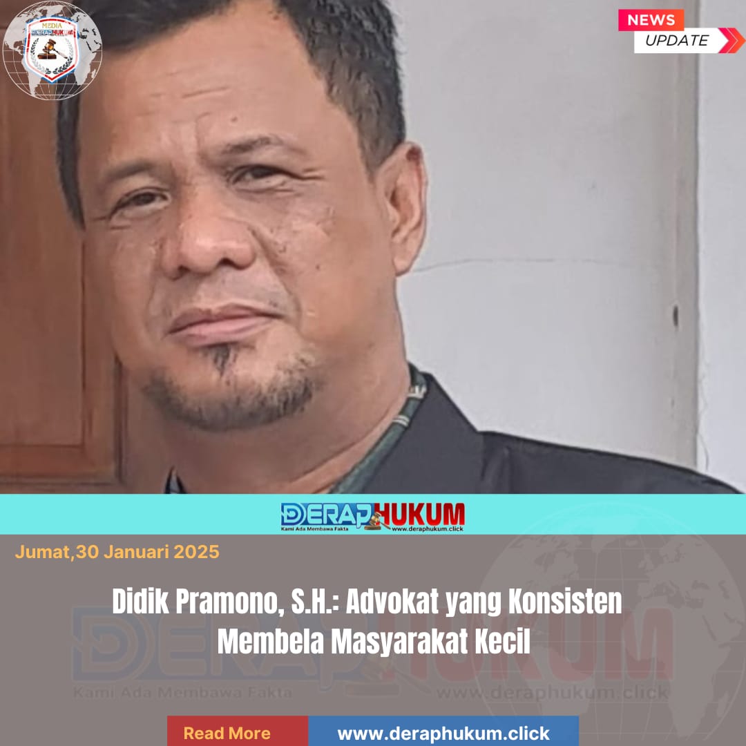 Kota Pekalongan, | Deraphukum.click | Nama Didik Pramono, S.H., kini menjadi sorotan sebagai advokat yang aktif mendampingi masyarakat kecil di Pekalongan Raya. Ia terlibat dalam penanganan berbagai kasus, termasuk persoalan hukum antara warga dengan bank, koperasi bermasalah, perusahaan pembiayaan, serta sengketa tanah.