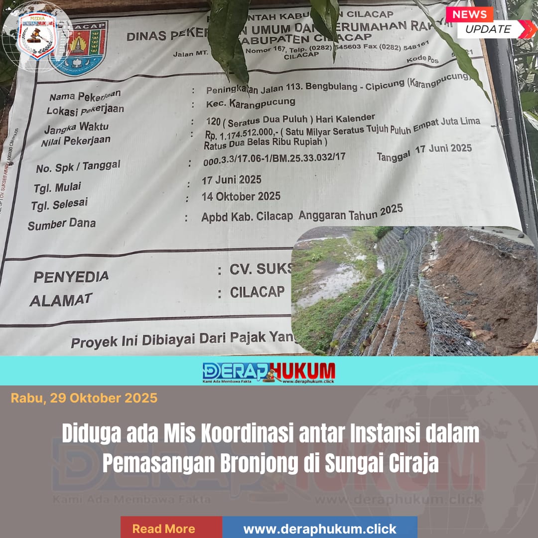 “Terkait proyek pemasangan bronjong di wilayah sungai Ciraja mestinya ada komunikasi koordinasi dari pihak PUPR Cilacap dengan BBWS Citanduy,sehingga terjadi keterpaduan rencana dan aksi,tetapi selama ini kayanya belum.