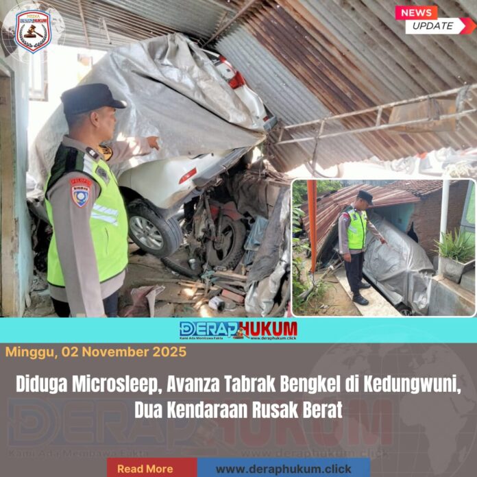 Pekalongan Jawa Tengah | DerapHukum.click | Kecelakaan lalu lintas tunggal terjadi di Jalan Raya Surabayan, Desa Kedungwuni Barat, Kabupaten Pekalongan, Sabtu (1/11/2025) pagi. Sebuah mobil Toyota Avanza dilaporkan menabrak bangunan bengkel las setelah pengemudinya diduga mengalami microsleep.