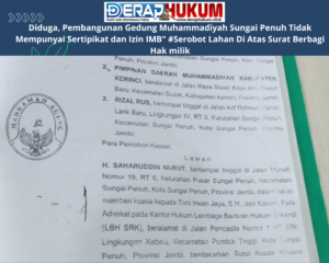 SUNGAI PENUH | Derphukum.click | Menurut keterangan yang merupakan ahli waris saat dikonfirmasi,Selasa 19 /3/2025 di panggil Uda im mengungkapkan bahwa penyerobotan lahan dan bangunan ini tidak mendasar, karena tidak sesuai dengan perjanjian bersama antara Pimpinan Daerah Muhammadiyah Kota Sungai Penuh dengan H.Saharuddin Nurut ( toko Anda) yang mana perjanjian berbagi hak atas tanah dan bangunan,