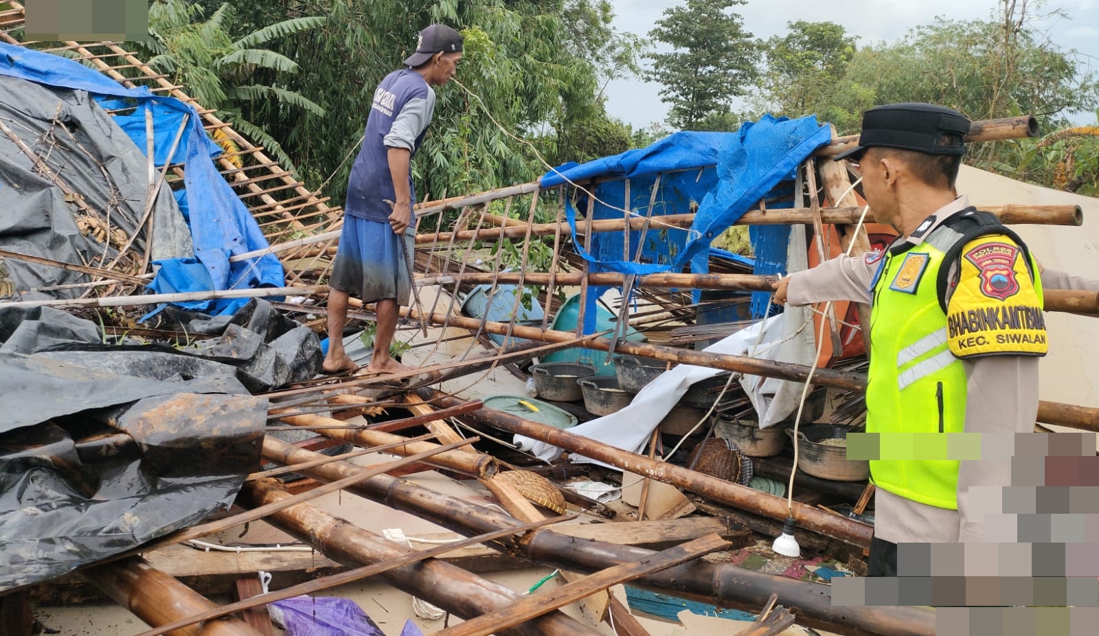 Mendapat laporan tersebut, personil Polsek Sragi langsung diterjunkan ke lokasi kejadian pada Senin (16/2/2026) pagi untuk melakukan pendataan dan membantu evakuasi material bangunan yang hancur.