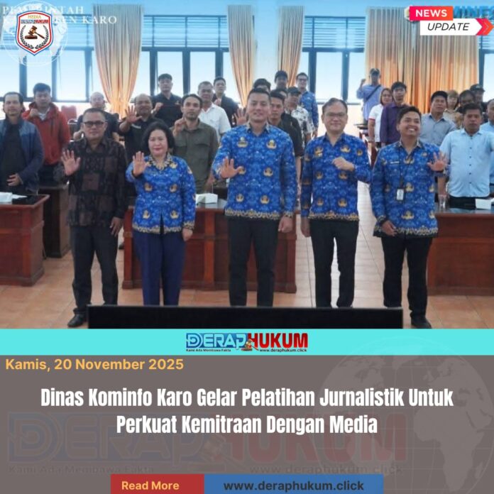 Pemerintah Kabupaten (Pemkab) Karo gelar kegiatan Pelatihan Jurnalistik Bagi Insan Pers Mitra Dinas Komunikasi Dan Informatika (Kominfo) Kabupaten Karo Tahun 2025 di aula Kantor Bupati Karo lantai 3 Kabanjahe, Senin (17/11/2025) mulai pukul 09.30 WIB yang dibuka oleh Sekretaris Daerah Kabupaten Karo (Sekdakab Karo), Gelora Kurnia Putra Ginting, S.STP, MM dan didampingi Kadis Kominfo Kabupaten Karo, Hesty Maria Br Tarigan, SH, MH.