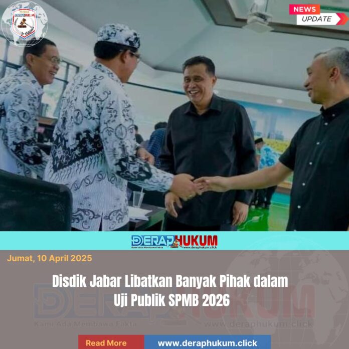Bandung,Jawa Barat | Deraphukum.click | Dinas Pendidikan (Disdik) Jawa Barat (Jabar) kembali menggelar uji publik Sistem Penerimaan Murid Baru (SPMB) SMA, SMK, dan SLB Tahun 2026 di Aula Tikomdik Disdik Jabar, Kota Bandung, Kamis (9/4/2026).