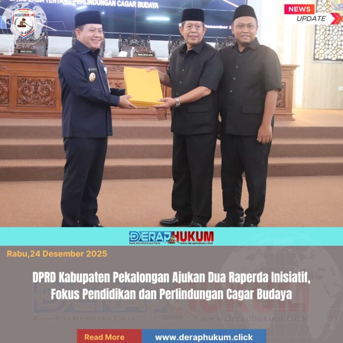 Pekalongan,Jawa Tengah | Deraphukum.click | DPRD Kabupaten Pekalongan resmi mengajukan dua Rancangan Peraturan Daerah (Raperda) inisiatif dalam Rapat Paripurna yang digelar pada Rabu, 24 Desember 2025. Dua raperda tersebut yakni Raperda tentang Penyelenggaraan Pendidikan Anak Usia Dini (PAUDI), Pendidikan Non Formal dan Pendidikan Dasar, serta Raperda tentang Perlindungan Cagar Budaya.
