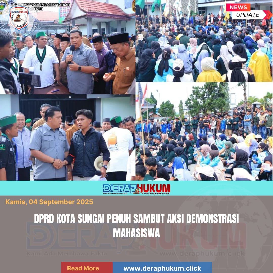Sungai Penuh, | Deraphukum.click | Pimpinan dan Anggota DPRD sambut Aksi Demonstrasi Mahasiswa Aliansi Cipayung Plus, Badan Eksekutif Mahasiswa (BEM) serta OKP Se-Kota Sungai Penuh dan Se- Kabupaten Kerinci, Selasa (02/08).