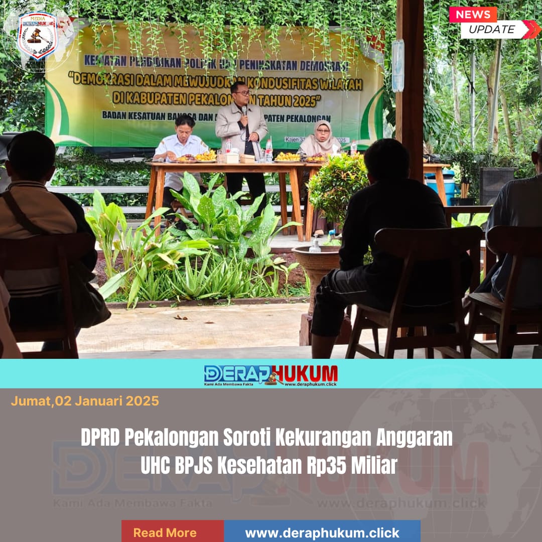 Pekalongan,Jawa Tengah | Deraphukum.click | DPRD Kabupaten Pekalongan menyoroti masih adanya kekurangan anggaran untuk pembiayaan program Universal Health Coverage (UHC) BPJS Kesehatan di wilayah setempat. Wakil Ketua DPRD Kabupaten Pekalongan, H. Sumar Rosul, S.IP., M.AP., menyebut saat ini pemerintah daerah baru mampu mengalokasikan anggaran sebesar Rp73 miliar, sementara kebutuhan riil mencapai Rp108 miliar. Artinya, masih terdapat selisih kekurangan sekitar Rp35 miliar.