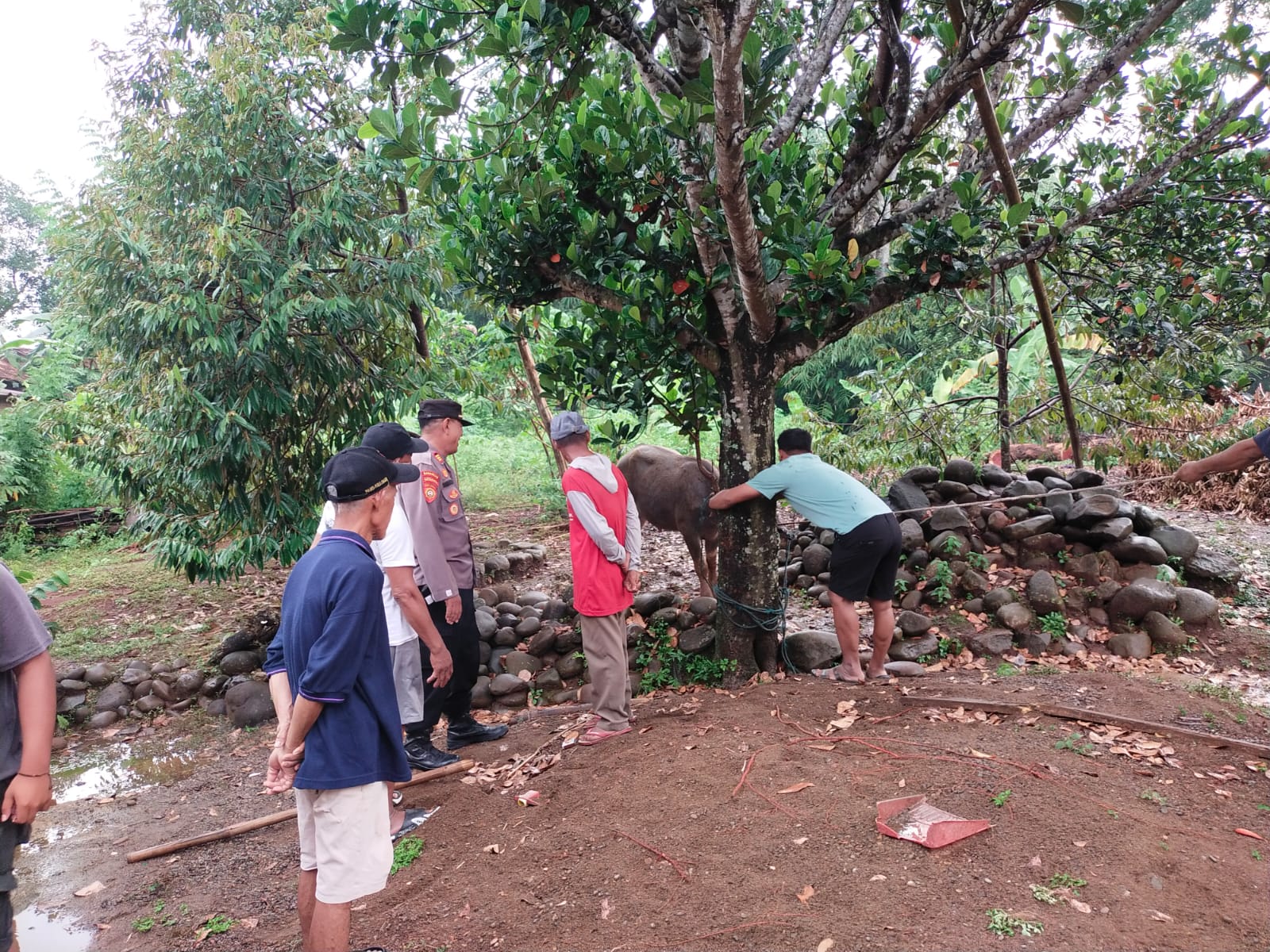 “Selama dua hari kerbau tersebut menghilang, hingga akhirnya Sabtu pagi muncul di perkebunan Dukuh Miren dalam kondisi stres dan mengamuk. Warga yang melihat hal itu langsung melapor karena khawatir kerbau masuk ke pemukiman,” tambah Kapolsek.