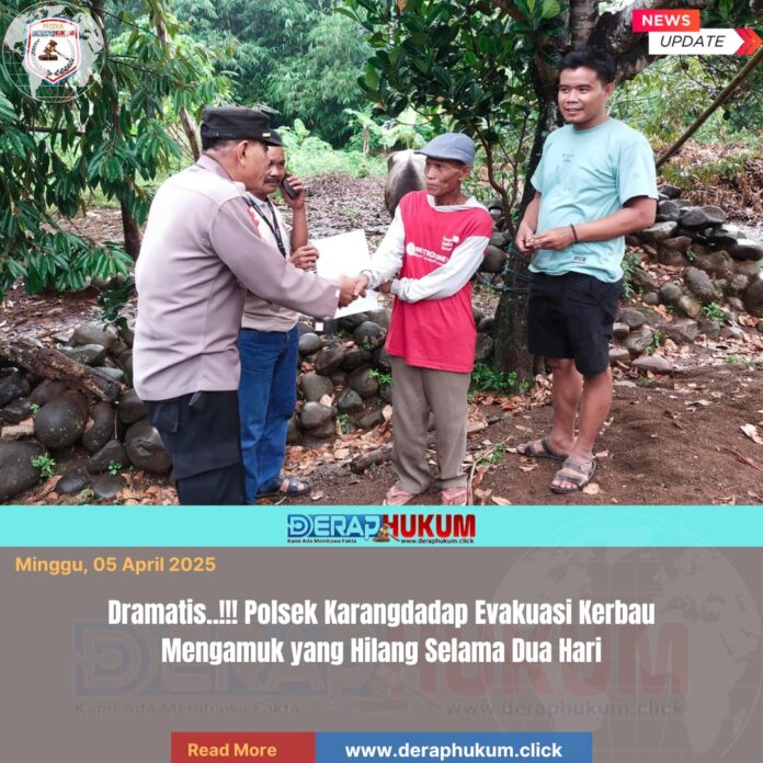 “Setelah menerima laporan dari Kepala Desa Pagumenganmas, kami Bersama anggota langsung bergerak ke Dukuh Miren. Alhamdulillah, berkat kerja sama yang baik antara Polri dan warga, kerbau tersebut berhasil diamankan dengan selamat,” ujar Kapolsek Karangdadap, Sabtu siang.