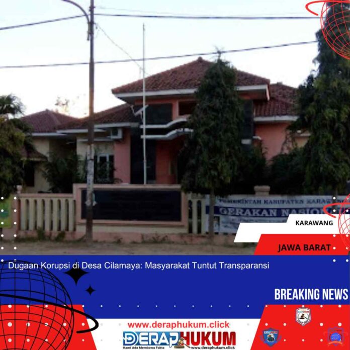 KARAWANG JAWABARAT | Deraphukum.click | Cilamaya, Karawang – Dugaan tindak korupsi di Desa Cilamaya kembali mencuat, memicu keresahan di kalangan masyarakat. Sejumlah warga dan aktivis menyoroti adanya ketidakwajaran dalam pengelolaan dana desa serta proyek pembangunan yang dinilai tidak transparan.
