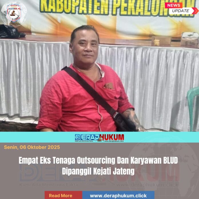 Kajen, | Deraphukum.click I Kejaksaan Tinggi Jawa Tengah melalui Asisten Tindak Pidana Khusus Dr. Lukas Alexander Sinuraya, S.H.M.H telah melayangkan surat permintaan keterangan kepada sejumlah eks tenaga outsourcing dan karyawan BLUD Kabupaten Pekalongan untuk dimintai keterangan terkait penyelidikan dugaan korupsi dalam pengadaan jasa outsourcing tahun anggaran 2022-2025 di Kabupaten Pekalongan.