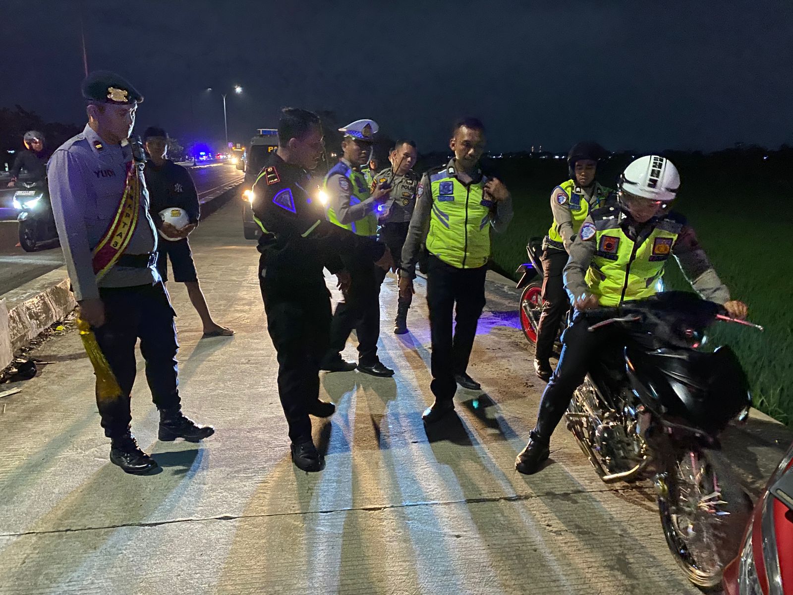 Usai apel, petugas langsung menyisir jalur Exit Tol Setono, memberikan imbauan kepada para remaja yang masih berkumpul, serta mengamankan kendaraan yang diduga akan digunakan untuk balap liar maupun yang menggunakan knalpot tidak sesuai standar.