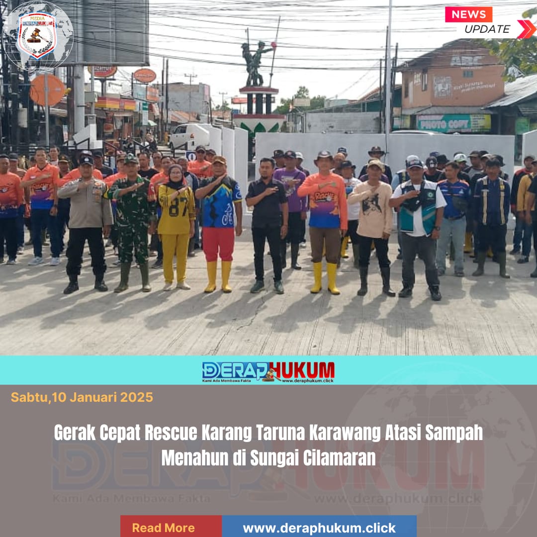 Karawang,Jawa Barat | Deraphukum.click | Dalam rangka memperingati Hari Lingkungan Hidup Nasional, Rescue Karang Taruna Kabupaten Karawang menggelar kegiatan bersih-bersih sampah darat dan saluran Sungai Cilamaran, pada Sabtu, 10 Januari 2026. Kegiatan ini berlangsung di wilayah Indra Sudrajat, Kelurahan Palumbonsari, Kecamatan Karawang Timur.