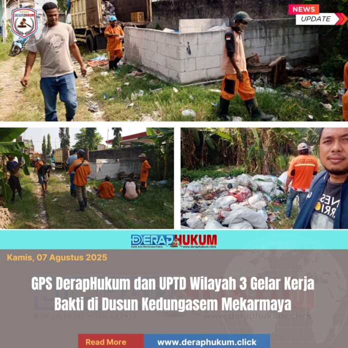 Mekarmaya– Gerakan Peduli Sampah (GPS) yang digagas oleh media DerapHukum Karawang bersama UPTD Wilayah 3 kembali menunjukkan komitmennya dalam menjaga kebersihan lingkungan. Kegiatan kerja bakti kali ini digelar di wilayah Dusun Kedungasem, Desa Mekarmaya, Kecamatan Cilamaya Wetan, Kabupaten Karawang.