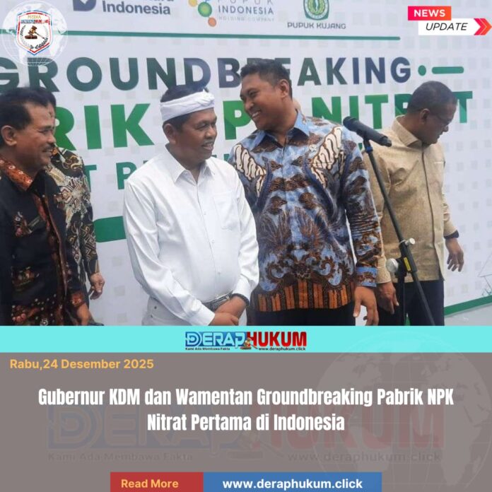 KARAWANG,Jawa Barat | Deraphukum.click | Gubernur Jawa Barat Dedi Mulyadi mendampingi Wakil Menteri Pertanian (Wamentan) RI Sudaryono melakukan prosesi groundbreaking pembangunan Pabrik NPK Nitrat PT Pupuk Kujang di Kabupaten Karawang, pada hari Selasa (23/12/2025).
