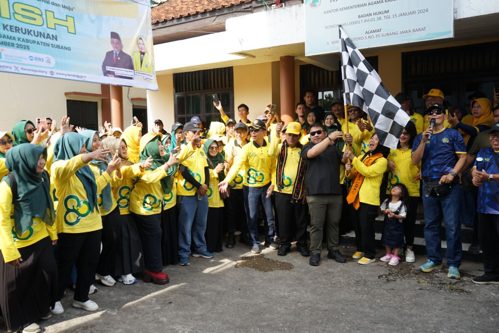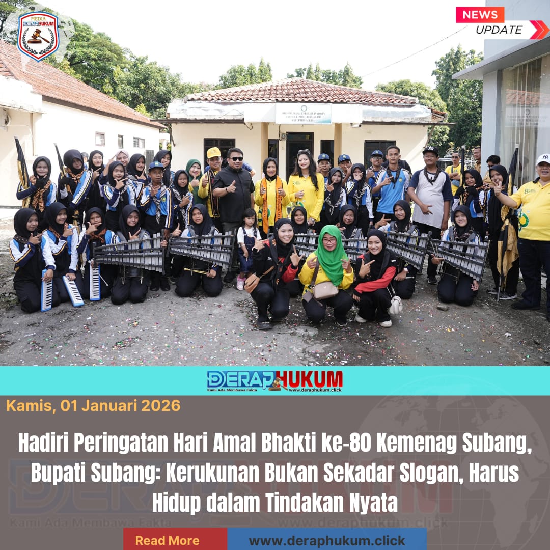 SUBANG, Jawa Barat | Deraphukum.click | Bupati Subang Reynaldy Putra Andita Budi Raemi, S.I.P., menghadiri sekaligus membuka kegiatan Jalan Santai Kerukunan dan Donor Darah dalam rangka Peringatan Hari Amal Bhakti (HAB) ke-80 Kementerian Agama (Kemenag) Kabupaten Subang. Kegiatan tersebut digelar di Kantor Kemenag Kabupaten Subang, Selasa (30/12/2025).