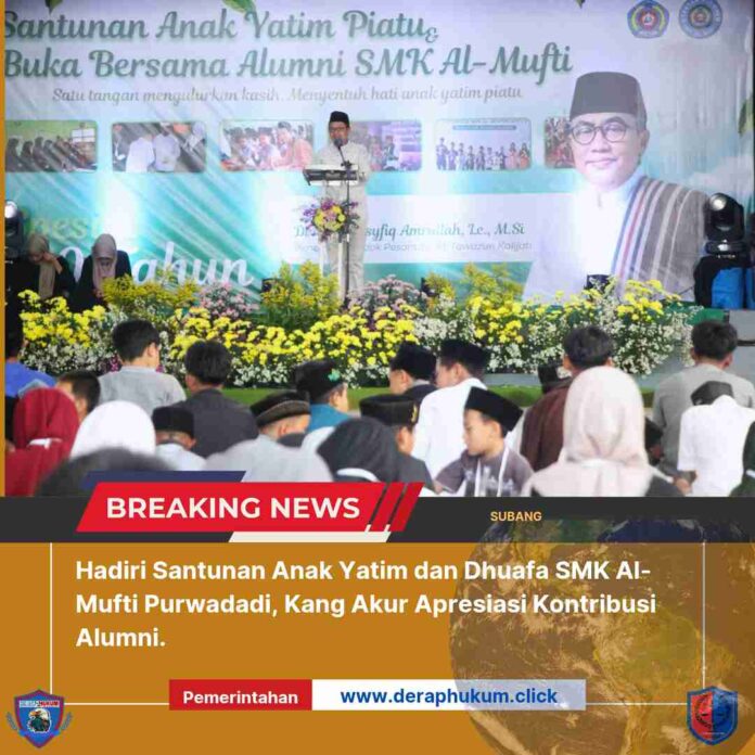 SUBANG I Deraphukum.Click I Wakil Bupati Subang, H. Agus Masykur Rosyadi, menghadiri Santunan anak yatim piatu dan buka bersama alumni SMK Al-Mufti yang bertempat di kampus SMK Al-Mufti Purwadadi, Kabupaten Subang. Pada Sabtu (29/03/2025)