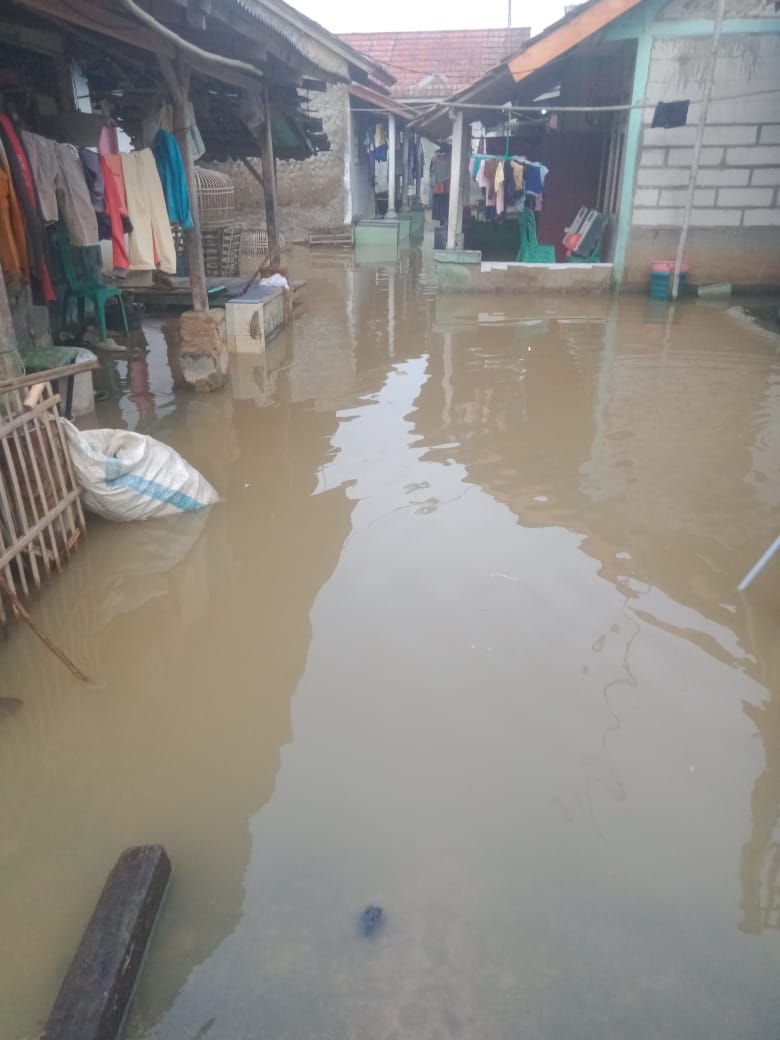 “Kondisi sungai mampet, jadi air dari sawah langsung masuk ke rumah-rumah warga,” ujar salah seorang warga setempat.