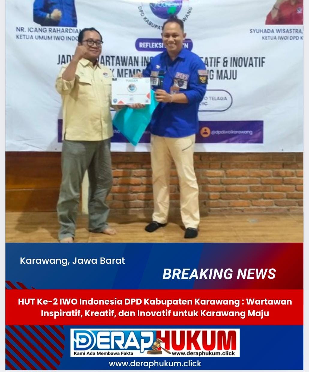 HUT ke-2 IWO Indonesia DPD Kabupaten Karawang ini menjadi momentum penting untuk memperkuat peran wartawan sebagai agen perubahan. Dengan semangat inspiratif, kreatif, dan inovatif, IWO Indonesia berkomitmen mendukung Karawang menuju masa depan yang lebih cerah ( C.Iwan )