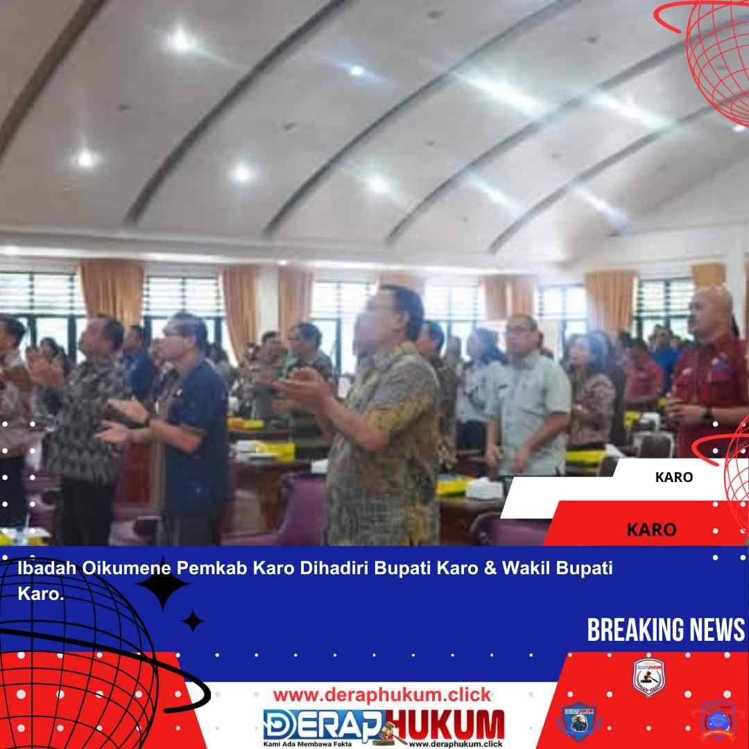 KARO, | Deraphukum.click | Bupati Karo, Brigjen Pol (Purn) Dr. dr. Antonius Ginting, SP. OG, M.Kes bersama Wakil Bupati Karo Komando Tarigan, S.P., serta rombongan hadiri Ibadah Oikumene di Lingkungan Pemerintah Kabupaten Karo yang bertempat di Aula Kantor Bupati Karo. Jalan Jamin Ginting No. 17 Kabanjahe Jumat, (07/03/2025).