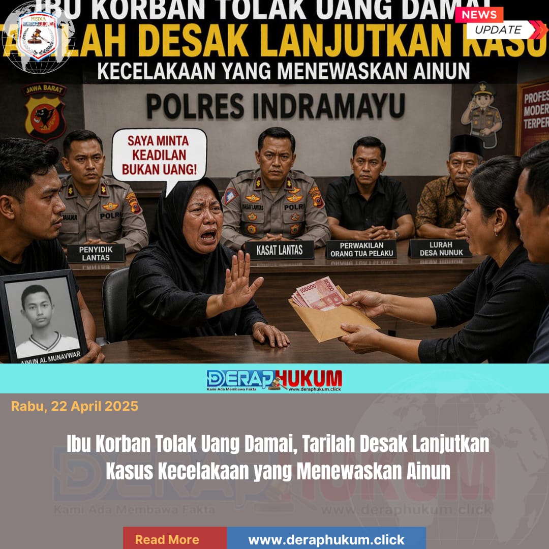 Indramayu,Jawa Barat | Deraphukum.click | Setelah sekian lama mandek, kasus kematian Ainun Almunawar yang dikejar sebelas siswa hingga tewas di lokasi kecelakaan memasuki babak baru, Sebuah pertemuan antara pihak keluarga korban dan keluarga para pelaku pengejaran (yang tidak pernah ditetapkan sebagai tersangka) digelar atas inisiasi dan dijembatani Polres Indramayu, Selasa (21/4/2026).