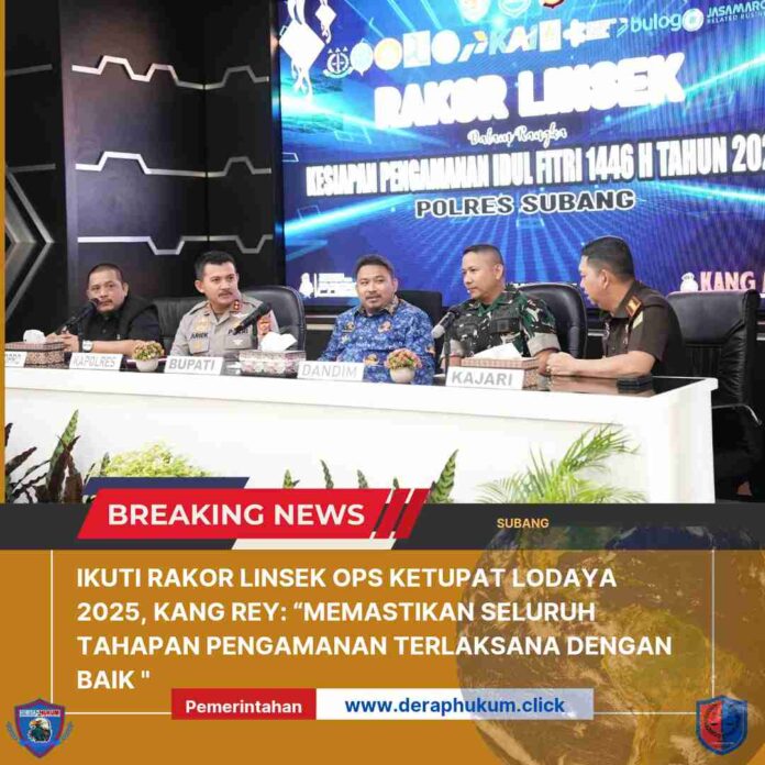 SUBANG || Deraphukum.click |Dalam rangka memastikan kesiapan pengamanan Idulfitri 1446 H/2025, Bupati Subang Reynaldy Putra Andita BR, S.IP menghadiri Rapat Koordinasi Lintas Sektor (Rakor Linsek) Ops Ketupat Lodaya 2025 yang diselenggarakan di Aula Polres Subang,