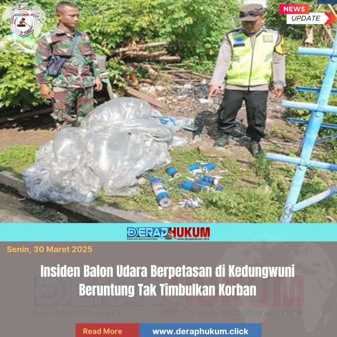Pekalongan,Jawa Tengah | Deraphukum.click | Polres Pekalongan – Polda Jateng – Peristiwa jatuhnya balon udara yang dilengkapi rangkaian petasan mengagetkan warga Desa Podo, Kecamatan Kedungwuni, Kabupaten Pekalongan, pada Minggu (29/3/2026) pagi. Balon tersebut dilaporkan jatuh dan menimpa atap rumah milik warga.