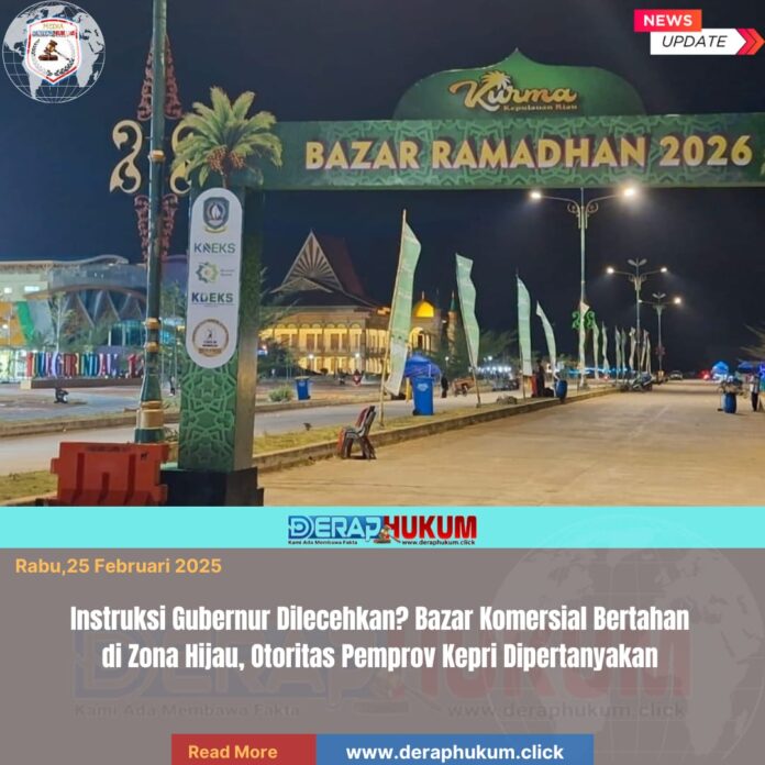 | deraphukum.click | Tanjungpinang — Krisis tata kelola ruang publik kembali mengguncang Taman Gurindam 12. Instruksi resmi Ansar Ahmad tertanggal 23 Februari 2026 yang memerintahkan pembubaran bazar di Zona B kini menjadi sorotan tajam publik. Alih-alih berhenti, aktivitas komersial justru masih berlangsung. Vendor yang mengoordinasikan UMKM atas nama “Kota Tua” tetap beroperasi dengan dasar surat Dinas Pariwisata Provinsi Kepulauan Riau Nomor B/100.3.12.10/68/Dispar/2026.