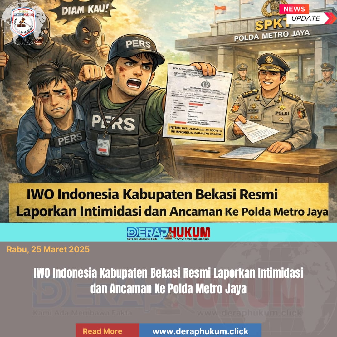 BEKASI,Jawa Barat | Deraphukum.click | Ikatan Wartawan Online Indonesia (IWOI) DPD Kab. Bekasi mengambil langkah hukum tegas menyusul rentetan intimidasi yang menimpa ketua DPD IWOI Kabupaten Bekasi, Ade Gentong. Didampingi tim hukum, IWO Indonesia resmi melaporkan aksi ancaman kekerasan dan upaya pembungkaman pers ke Polda Metro Jaya.