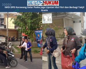 KARAWANG, | Deraphukum.click | Dalam rangka menyambut Idul Fitri 1446 Hijriah, IWOI (Ikatan Wartawan Online Indonesia) DPD Karawang mengadakan Posko Jaga Liputan Idul Fitri dan Gerakan Peduli Sesama, berbagi takjil gratis kepada masyarakat di Jalan Raya Lingkar Tanjung Pura Lamaran, Karawang, pada Selasa, 25 Maret 2025. Kegiatan ini bertujuan untuk membantu masyarakat yang sedang menjalankan ibadah puasa serta mempererat hubungan antara wartawan dan masyarakat.