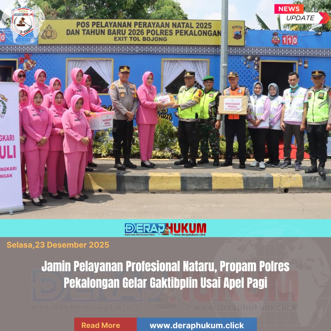 Pekalongan,Jawa Tengah | Deraphukum.click | Polres Pekalongan – Polda Jateng – Penegakan disiplin di internal kepolisian terus diperketat selama pelaksanaan Operasi Lilin Candi 2025. Usai pelaksanaan apel pagi, Si Propam Polres Pekalongan menggelar kegiatan Penegakan Ketertiban dan Disiplin (Gaktibplin) di halaman Mapolres Pekalongan, Selasa (23/12/2025).