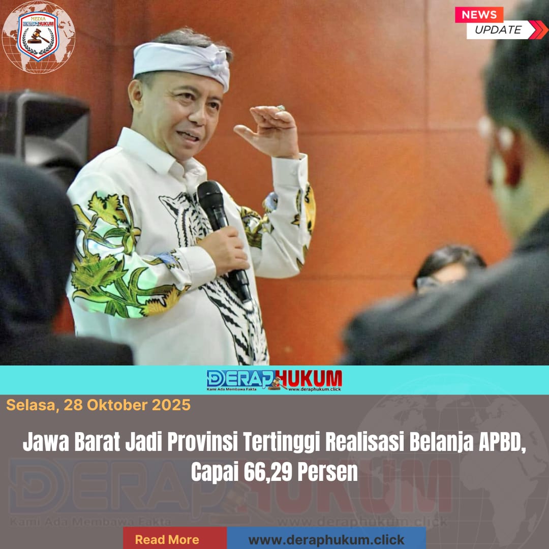 KOTA BANDUNG, Jawa Barat | Deraphukum.click | menjadi provinsi dengan realisasi belanja Anggaran Pendapatan dan Belanja Daerah (APBD) tertinggi di Indonesia, mencapai 66,29 persen per 17 Oktober 2025.