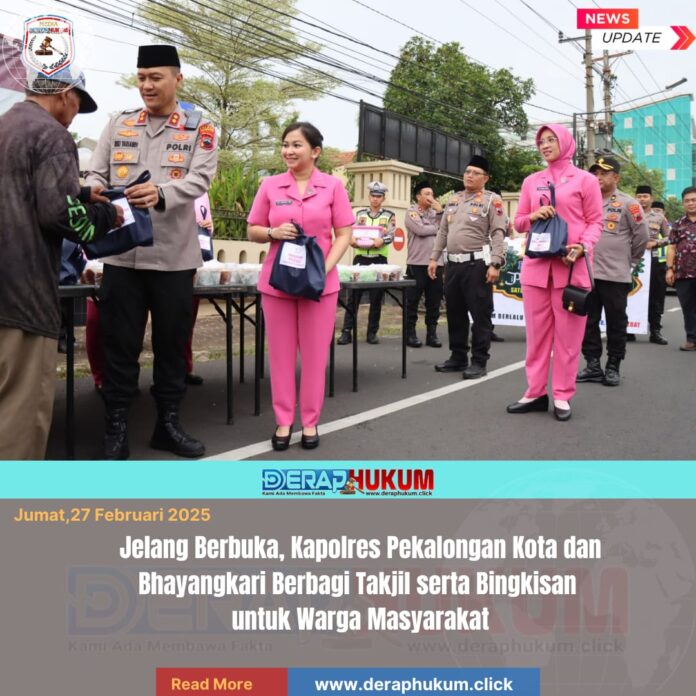 Pekalongan Kota, | Deraphukum.click | Polres Pekalongan Kota – Polda Jateng – Menjelang waktu berbuka puasa, Kapolres Pekalongan Kota AKBP Riki Yariandi, S.H., S.I.K., M.H., didampingi Ketua Bhayangkari Cabang Pekalongan Kota Ny. Annisha Riki, bersama puluhan personel Polres dan pengurus Bhayangkari menggelar aksi sosial di bulan suci Ramadhan 1447 H, Kamis (26/2/2026).