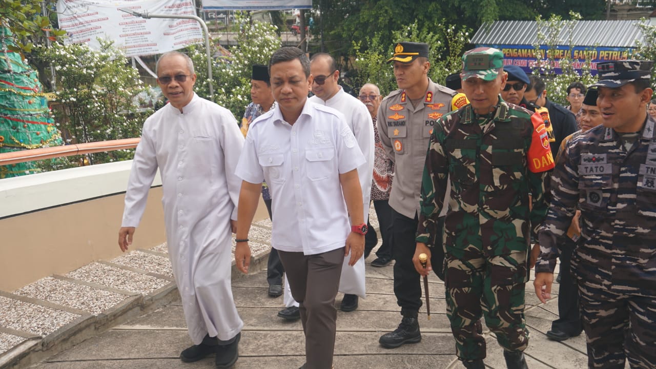 Pekalongan,Jawa Tengah | Deraphukum.click | Pemerintah Kota Pekalongan bersama unsur Forkopimda melakukan monitoring pengamanan perayaan Natal 2025 di sejumlah gereja, Rabu (24/12/2025). Kegiatan ini dilakukan untuk memastikan kesiapan pengamanan dan kelancaran ibadah umat Kristiani.