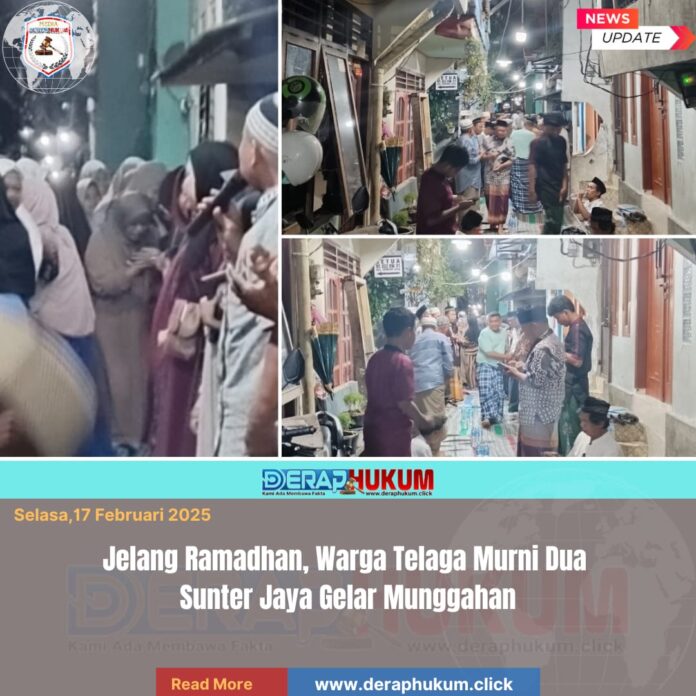 JAKARTA, | Deraphukum.click | menyambut datangnya bulan suci ramadhan, Warga wilayah RT 021 dan RT 022/RW 001 Kelurahan Sunter Jaya melaksanakan tradisi yang disebut “Munggahan” di Gang Telaga Murni 2 pada Senin (16/2/2026).