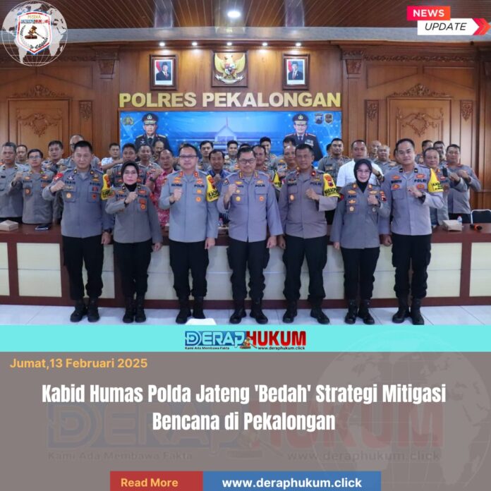 Pekalongan,Jawa Tengah | Deraphukum.click | Polres Pekalongan – Polda Jateng – Menghadapi potensi bencana alam di wilayah Jawa Tengah, Bidhumas Polda Jateng bergerak cepat memperkuat jajaran kewilayahan. Bertempat di aula Polres Pekalongan, Kabid Humas Polda Jateng Kombes Pol Artanto, S.I.K., M.Si memberikan arahan khusus terkait strategi mitigasi pemberitaan bencana di era digital, Jumat (13/2/2026).