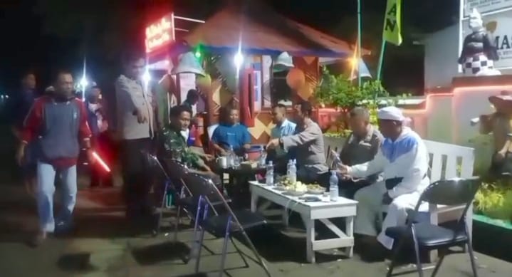 Kehadiran aparat kepolisian dan TNI disambut hangat oleh masyarakat yang sedang melaksanakan ronda malam.