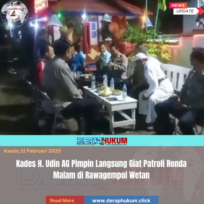 Karawang,Jawa Barat | deraphukum.click | Giat patroli ronda malam di Desa Rawagempol Wetan berlangsung penuh kebersamaan dan kekompakan. Kegiatan tersebut dipimpin langsung oleh Kepala Desa Rawagempol Wetan, H. Udin AG, sebagai bentuk komitmen pemerintah desa dalam menjaga keamanan dan ketertiban lingkungan.