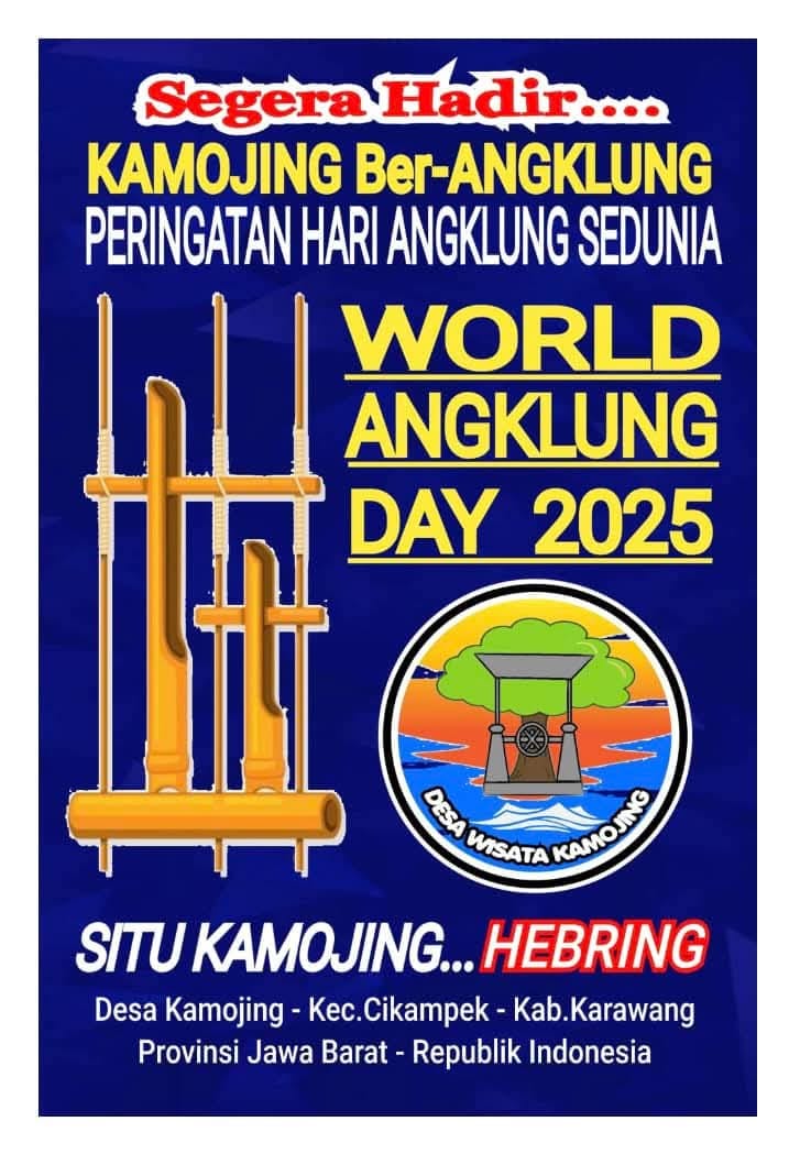 KARAWANG, JAWA BARAT | Deraphukum.click | Dalam rangka memperingati World Angklung Day 2025, Desa Wisata Kamojing, Kecamatan Cikampek, Kabupaten Karawang, akan menggelar kegiatan budaya bertajuk “Kamojing Ber-Angklung”.