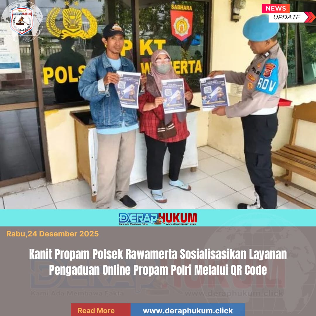 KARAWANG,Jawa Barat | Deraphukum.click | Kanit Propam Polsek Rawamerta, Aiptu Setiawan Budi, melaksanakan kegiatan sosialisasi layanan pengaduan online Propam Polri kepada masyarakat. Sosialisasi ini dilakukan sebagai upaya meningkatkan transparansi, akuntabilitas, serta kualitas pelayanan kepolisian kepada publik.
