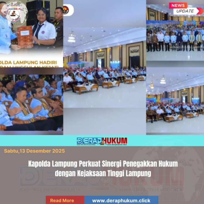 Kapolda Lampung Irjen Pol Helfi Assegaf, S.I.K., M.H. hadiri Program Unggulan Kejaksaan Tinggi Lampung di Gedung Sesat Agung Bumi Sai Waway, Jumat (12/12/25). Kehadiran ini perkuat sinergi Polda Lampung dan Kejaksaan Tinggi Lampung.